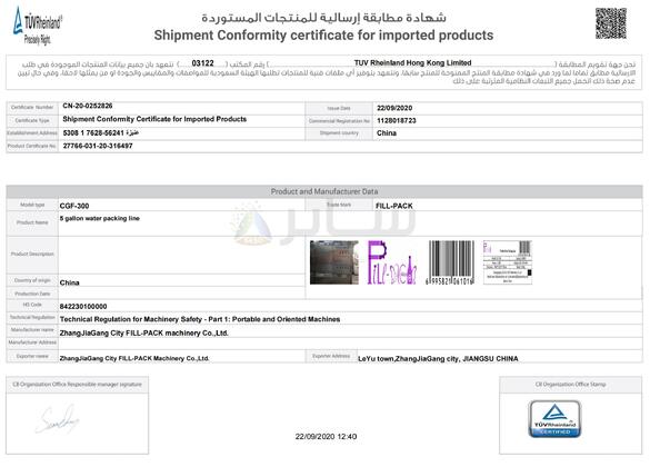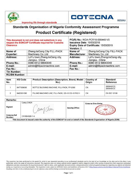 | スタンダード: | EXPORTATION CERTIFICATE |