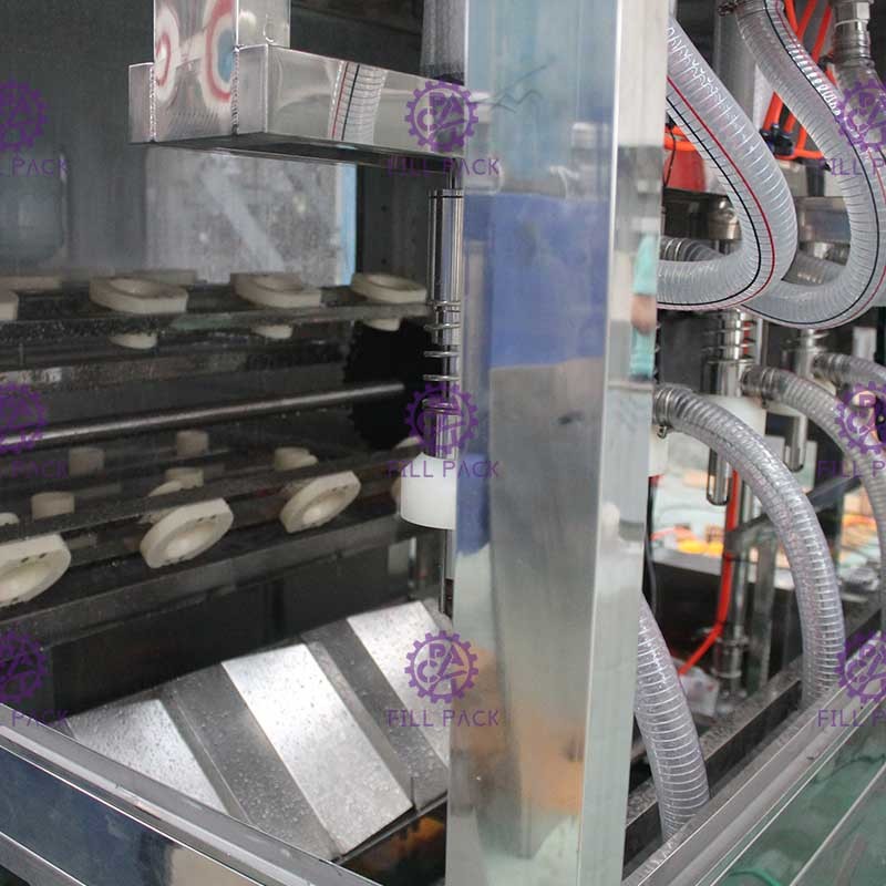 リンス部分は8つの工程があります。最初の洗浄工程は温水洗浄、2番目の洗浄工程は水切り、3番目の洗浄工程は滅菌水、4番目の洗浄工程は水切り、5番目の洗浄工程は消毒液洗浄、6番目の洗浄工程は水切り、最後の2つの工程は純水洗浄です。リンス後、10秒間水切りを行います。