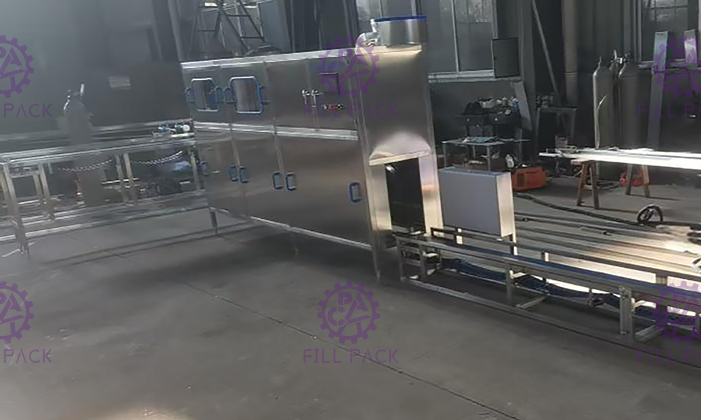 ガロンの水生産工場には,半自動脱帽機と洗濯機,モノブロック洗浄器-充填器-キャッパー,ローラーコンベヤー,ラベル収縮トンネル,チェックライト,固いインクロールコード化マシン