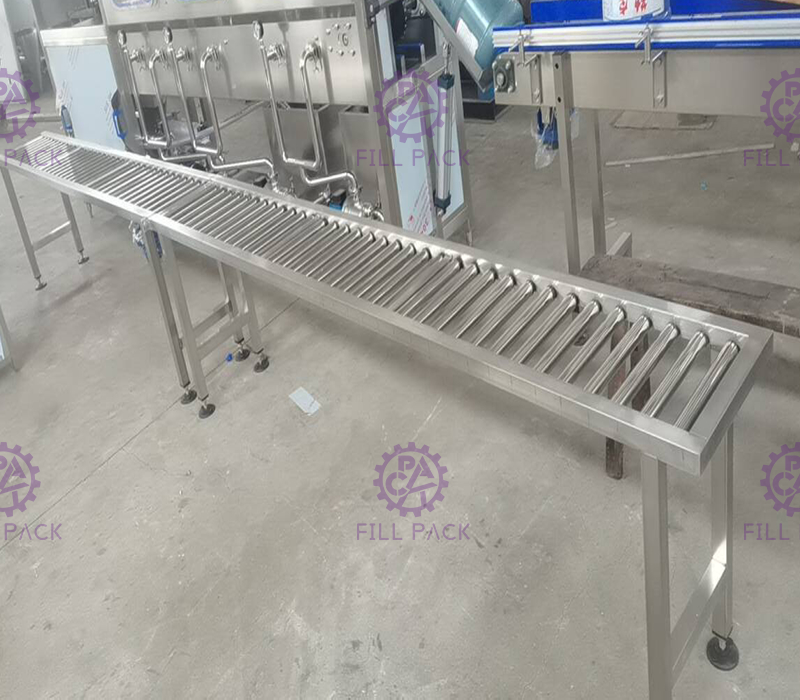 単一の物体はローラーコンベアの傾斜を利用して前進し、複数の物体が接近している場合は、後方の物体が前方の物体を押すことで運動要素が増加します。