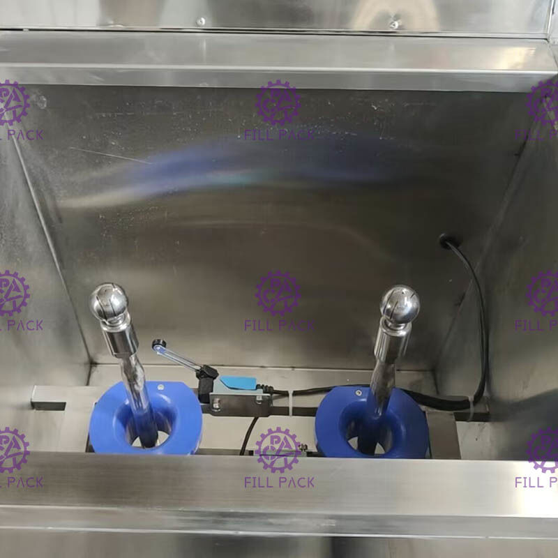 作業員が使用済みボトルを,穴に首を入れ,首から蓋を外すために脚のペダルを押す.洗濯機の左側に挿入する洗濯機は自分で起動します. 洗濯中に,内部のブラシを入れ,洗濯時間は事前に設定されます.時間が終わったら 機械は止まる. 暖房機能は,顧客の要件としてオン/オフに切り替えることができます.