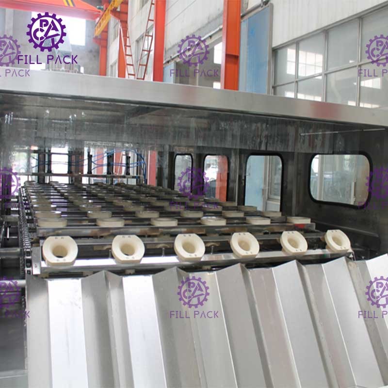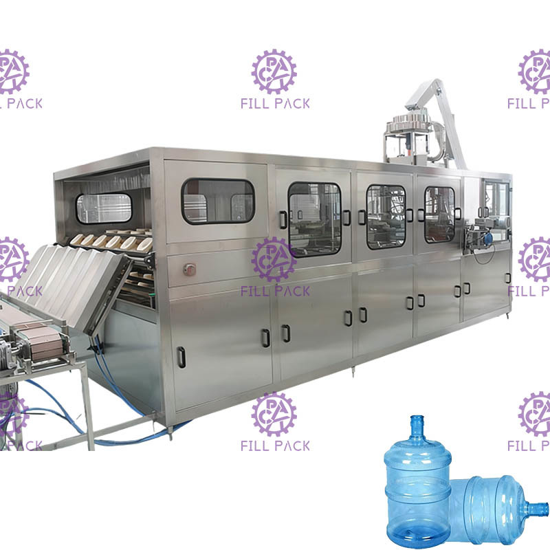 全工程は、異なる機能を持つ3台の機械を1つのフレームに組み合わせたものです。PLC、いくつかの光電管、いくつかのシリンダーによる一般的な制御。容量:1時間あたり800〜900本-5L