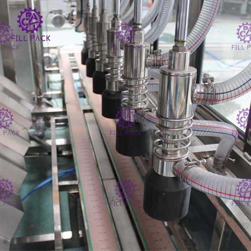 作業原理は次のとおりです。ポンプは液体を機械に運び、8つのノズルに接続された8つの部分に分割され、各ノズルには充填時間と量を制御する1つの空気圧バルブがあります。